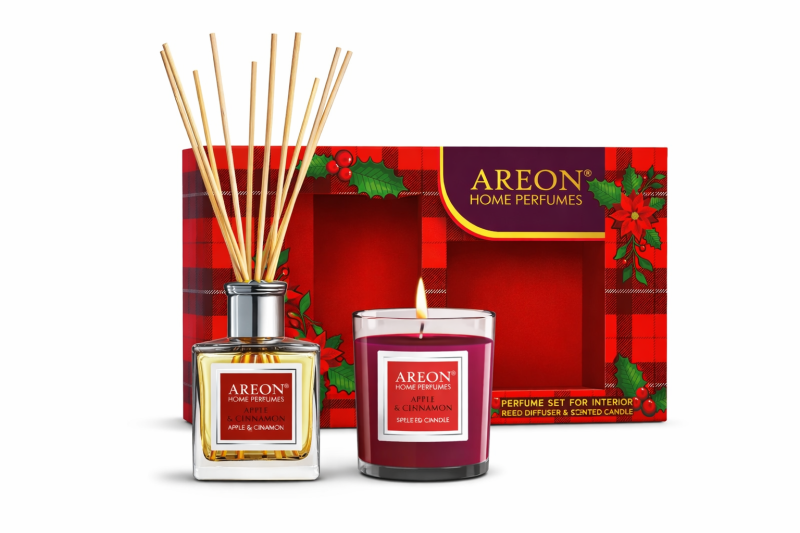 Луксозен комплект Ябълка и канела – свещ и парфюм за дома (150 мл)