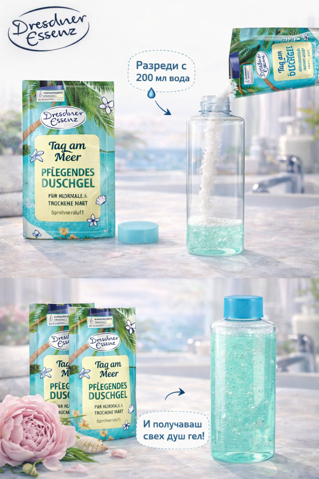 Dresdner Essenz Tag am Meer – Душ гел на прах, 45 г (250 мл след разреждане)