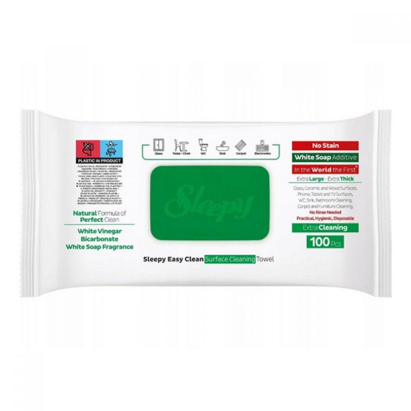 Sleepy 100 броя мокри кърпички подходящи за всяка повърхност.Почистването и дезинфекцирането на повърхности става лесно с тези мощни почистващи кърпи.