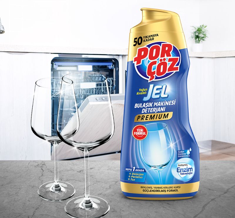Por Çöz Premium Jel е високоефективен гел за съдомиялни машини, разработен с усъвършенствана ензимна технология за безупречно почистване. Формулата му премахва лесно засъхнали, мазни и загорели остатъци от храна, като оставя съдовете блестящо чисти и напълно прозрачни – без петна, без варовик и без налепи.