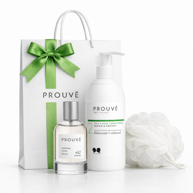 Комплексна грижа: Комбинация от аромат, грижа за косата и аксесоар за баня за цялостно усещане за разкош.