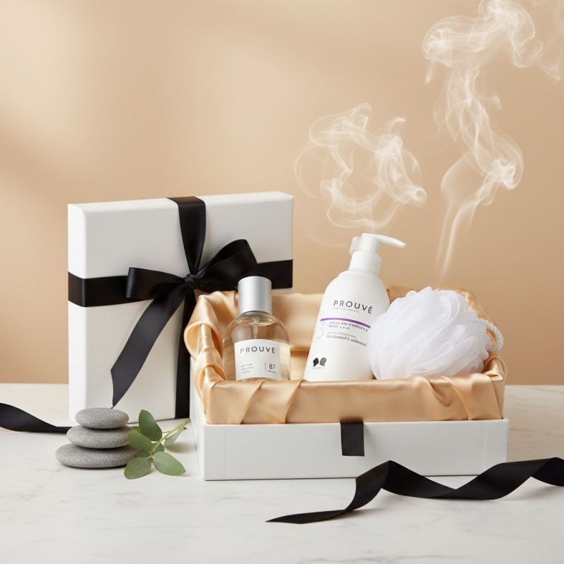 Стилна подаръчна кутия: Продуктите са поднесени в елегантна кутия с изчистен дизайн. Дизайнът е примерен и може да варира, което добавя елемент на изискана изненада и индивидуалност към всеки подарък.
