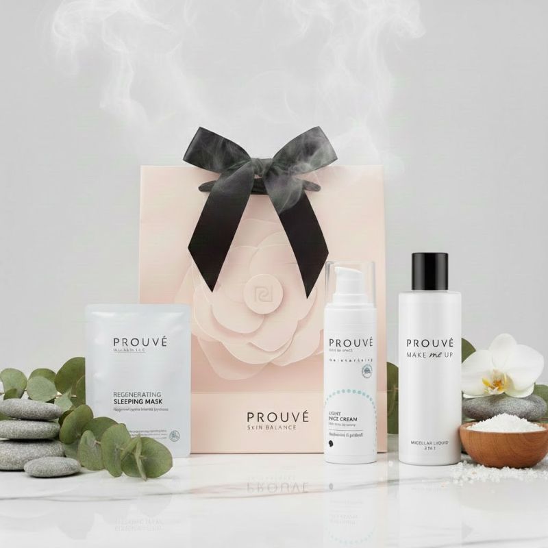 Открийте тайната на безупречната кожа с трите стъпки на Prouvé. Този комплект е създаден да осигури всичко необходимо за почистване, хидратация и възстановяване, събрано в една елегантна подаръчна торбичка.