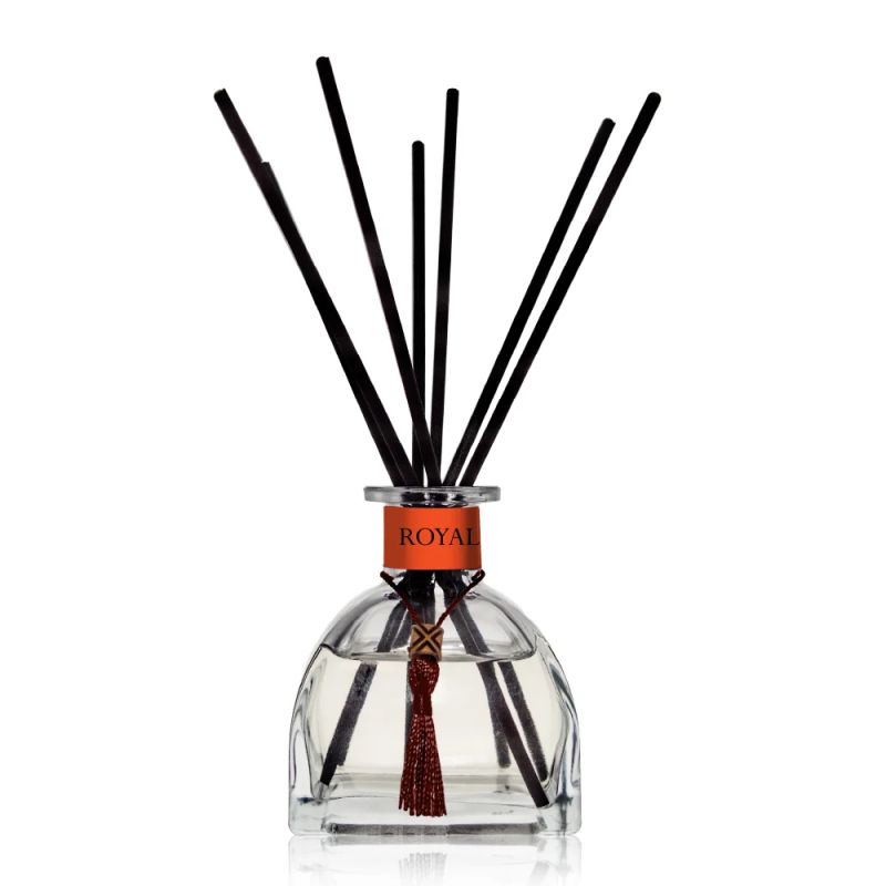 Ексклузивна селекция от фини парфюми за дома, декорирани с черни пръчици. Насладете им се и създайте комфорт в собственото си пространство. Луксозен кралски аромат, който се усеща във въздуха около вас, придавайки усещане за стил и изтънченост. Начин на употреба Свалете капачката и махнете пластмасовата тапа. Завийте капачката обратно. Поставете ратановите клечки, които след като се напоят ще изпълнят с елегантен аромат всяко помещение. Може сами да изберете силата на аромата: колкото повече клечки поставите във флакона, толкова по-интензивен ще е аромата.