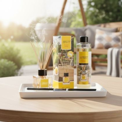 Ароматният сет „Слънчев дом“ създава топла и уютна атмосфера с нежно, свежо ухание, което носи усещане за чистота, комфорт и домашна хармония. Ароматът е балансиран и приятен, подходящ за всекидневна, спалня, офис или коридор.