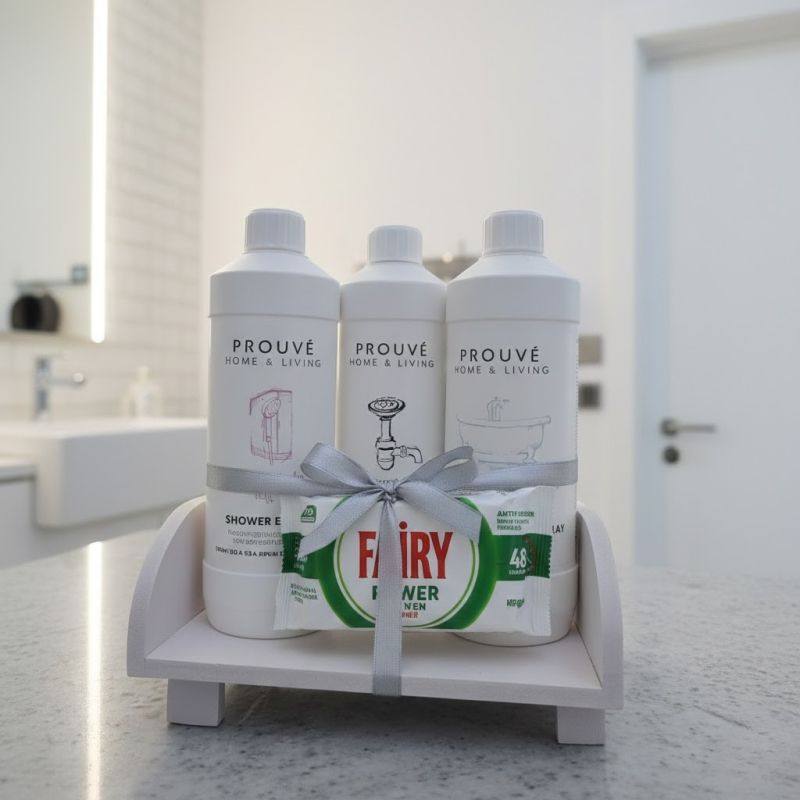 Сетът „Чиста баня“ PROUVÉ е цялостно решение за ефективно и лесно почистване на банята. Комбинацията от специализирани почистващи продукти осигурява отлични резултати при отстраняване на варовик, сапунени отлагания и замърсявания, като оставя повърхностите чисти и свежи.