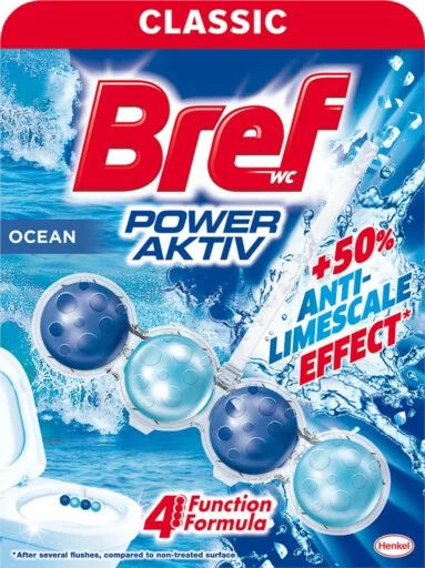 Bref WC Power Activ Pine е ефективен ароматизатор и почистващ препарат за тоалетна, който осигурява постоянна чистота и свежест при всяко пускане на водата. Благодарение на 4-функционалната формула, продуктът почиства, предотвратява натрупването на котлен камък, осигурява дълготрайна свежест и създава активна пяна.