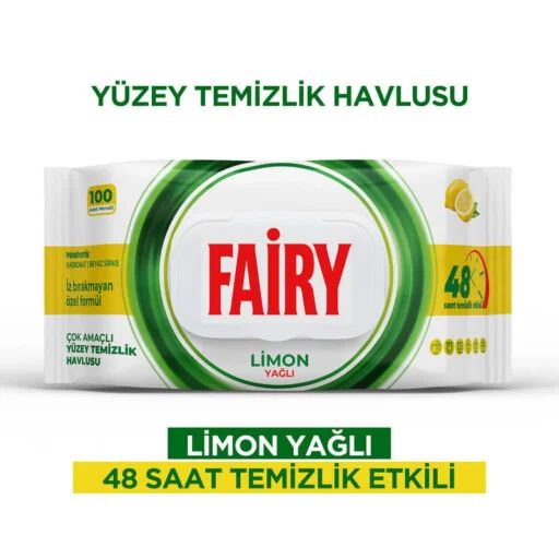 FAIRY универсални почистващи мокри кърпи с аромат Лимон 100 броя