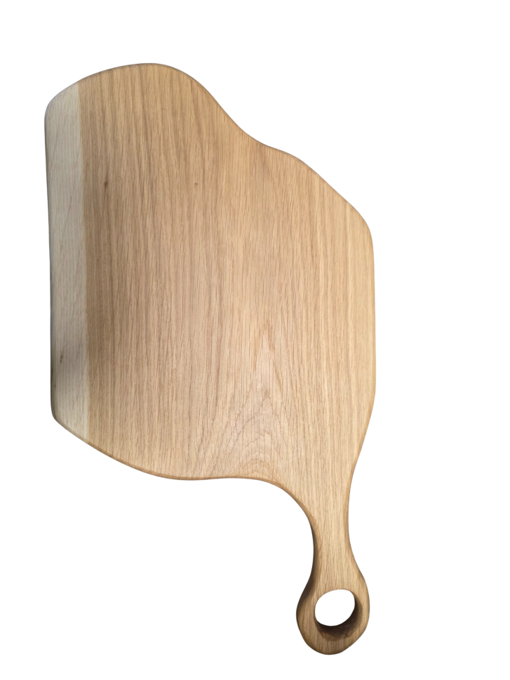 Практична и елегантна дъска, изработена от висококачествен масивен дъб. Отличава се с изчистен дизайн и естествена дървесна шарка, която придава топлина и автентичен характер на всяка кухня. Удобната дръжка с отвор позволява лесно пренасяне и окачване.