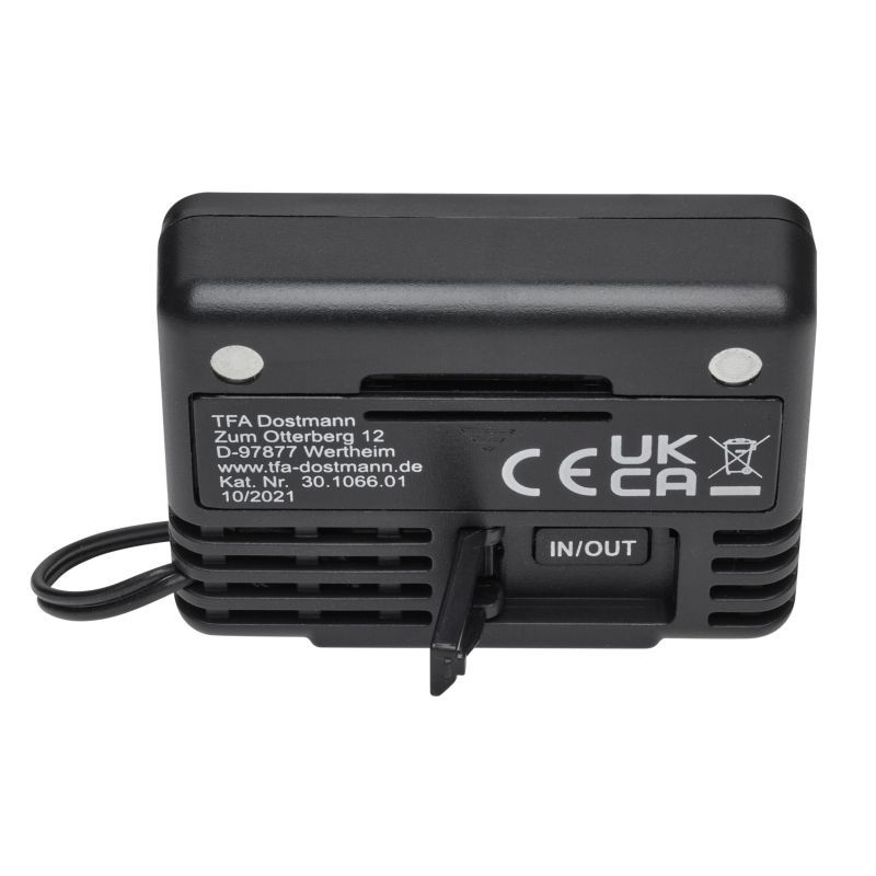 Когато се постави до прозореца, сензорният кабел просто се извежда навън, за да се измери външната температура.