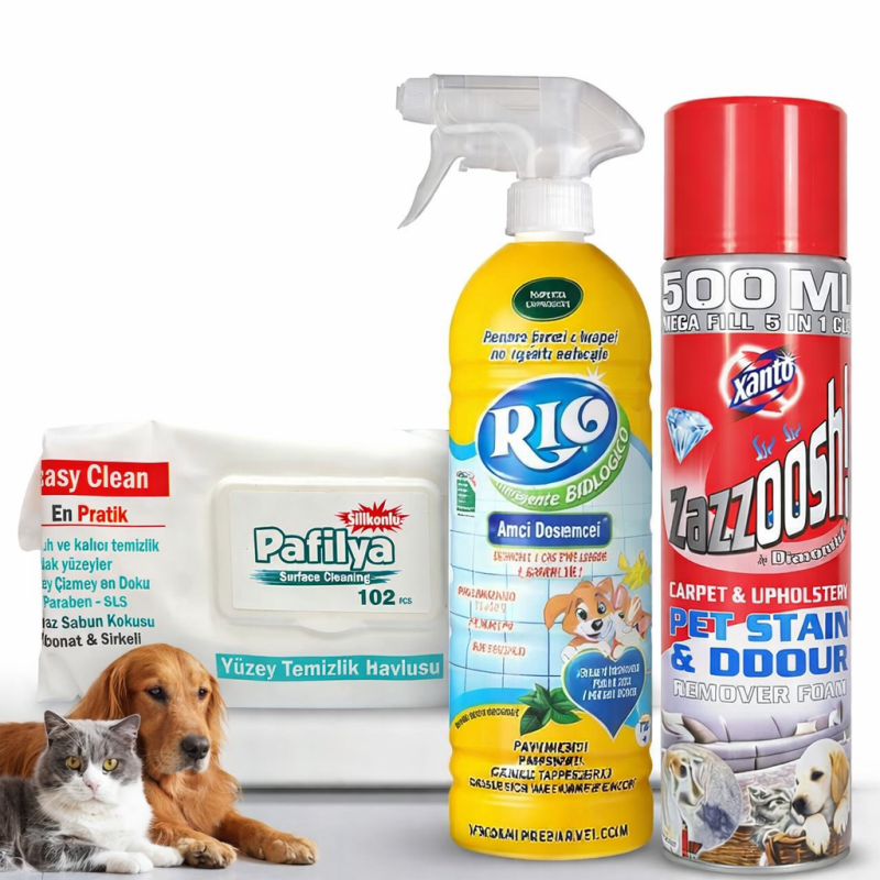 Практично решение за поддържане на безупречна хигиена в дома с домашни любимци. Комплектът съчетава бързо ежедневно почистване, дълбока грижа за текстилни повърхности и натурална формула за сигурна среда