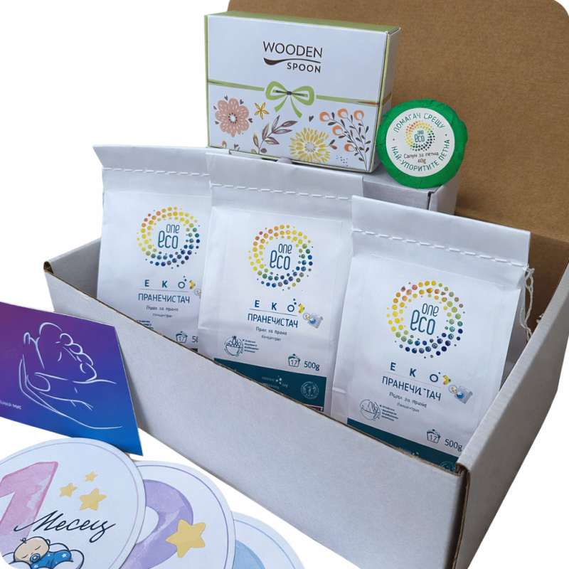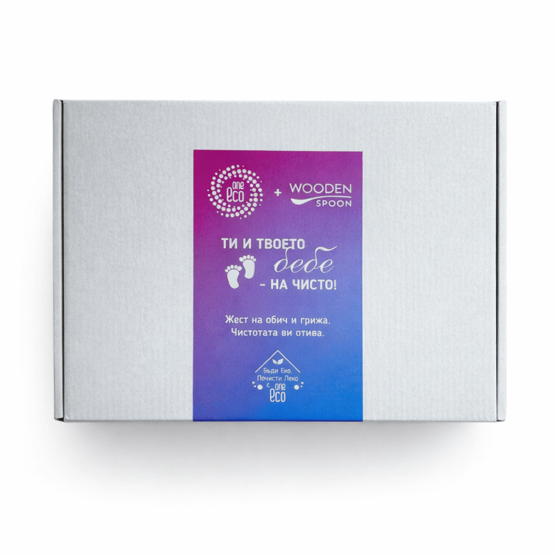 OneEco Кутия „Ти и твоето БЕБЕ – на чисто“ – еко комплект за бебешка грижа и пране