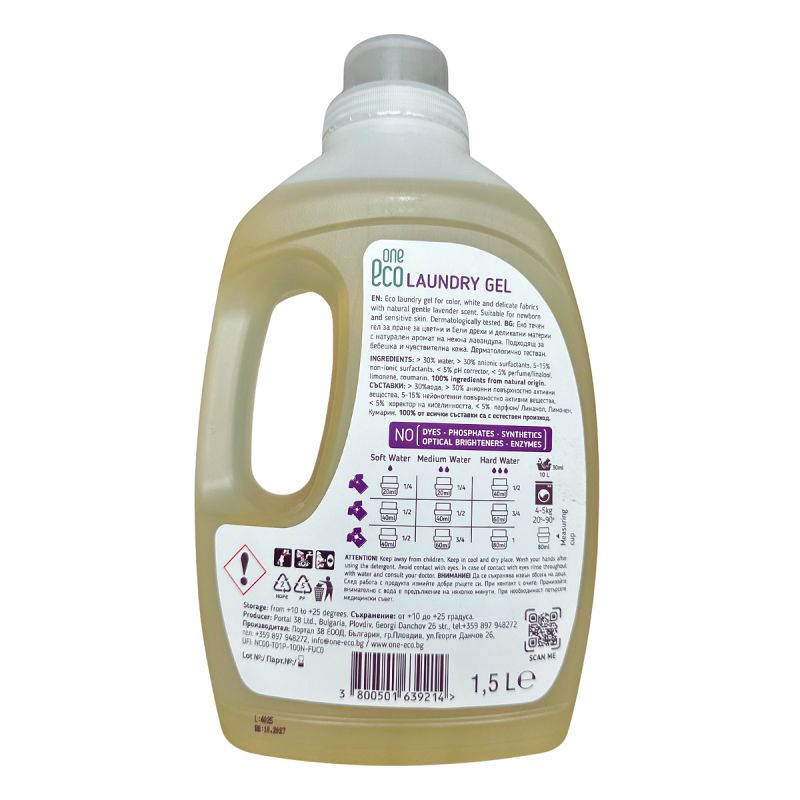 OneEco „Нежна лавандула“ гел за пране 1.5 л – дерматест, за бебета, концентрат