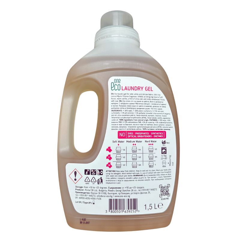 OneEco „Мистична есенция“ гел за пране 1.5 л – концентрат с дълготраен аромат и ефективно почистване