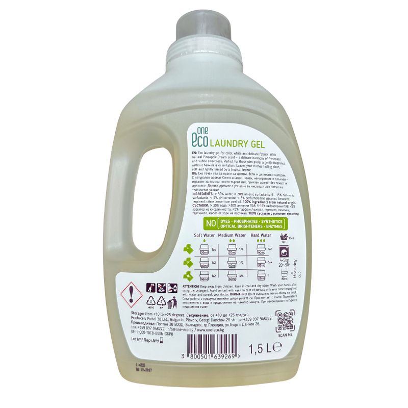 OneEco „Ананасова мечта“ гел за пране 1.5 л – концентрат с екзотичен аромат и ефективно почистване