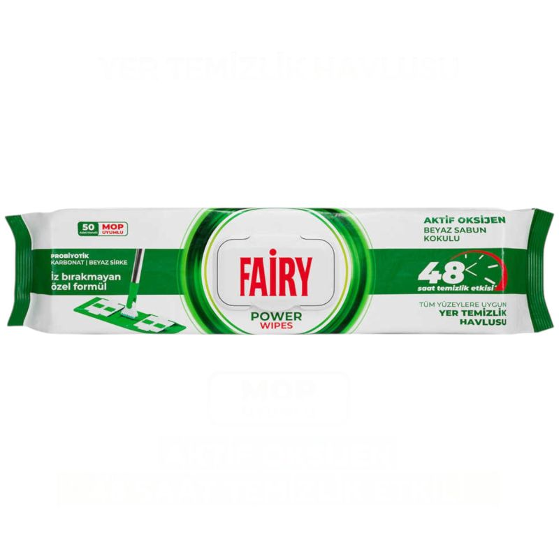 Fairy Power Wipes са удобни мокри кърпи за бързо и ефективно почистване на подове и различни твърди повърхности. Благодарение на формулата с активен кислород те премахват замърсяванията лесно, като оставят свеж аромат на бял сапун и усещане за чистота в дома.